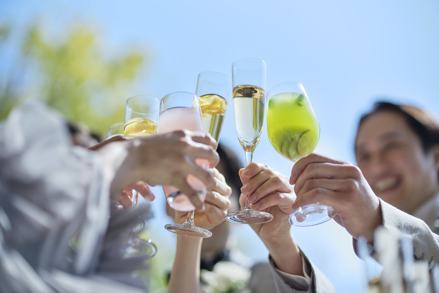 青空の下シャンパンやピンチョスなどをお楽しみいただくアペリティフパーティを。