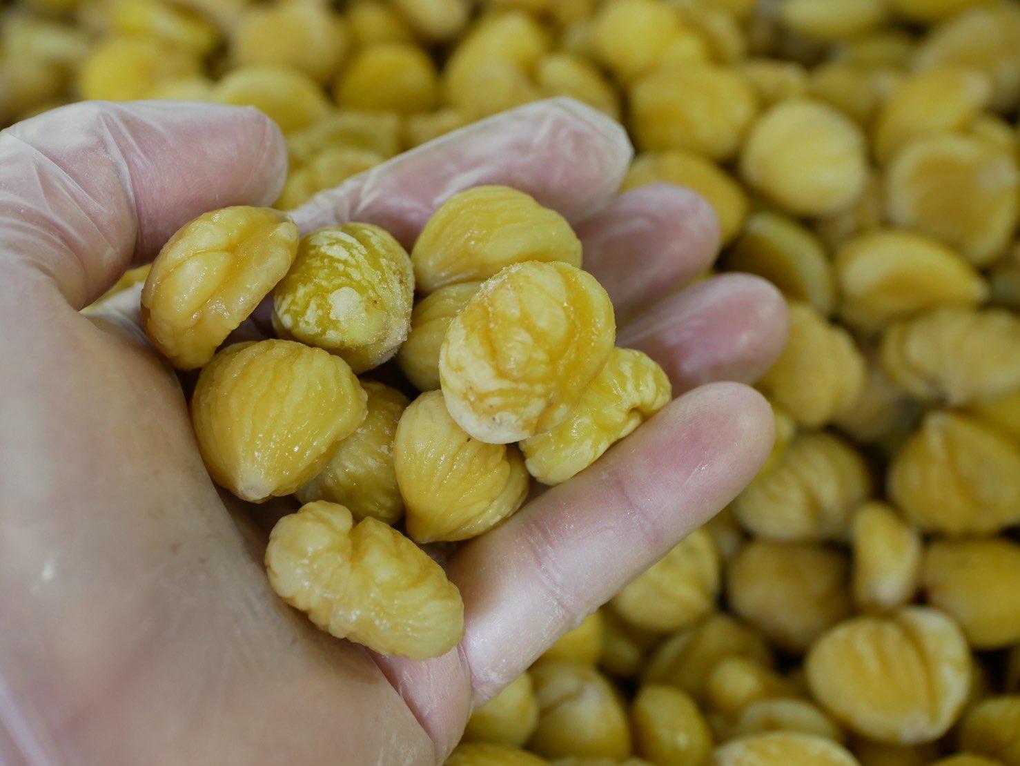 炒めたエシャロットにおいしそうに焼けた栗を加え...