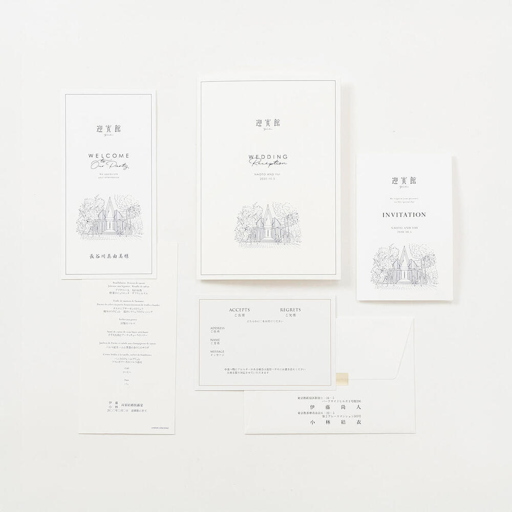 招待状・メニュー表&席札・席次表の3つのアイテムのご用意がございます!